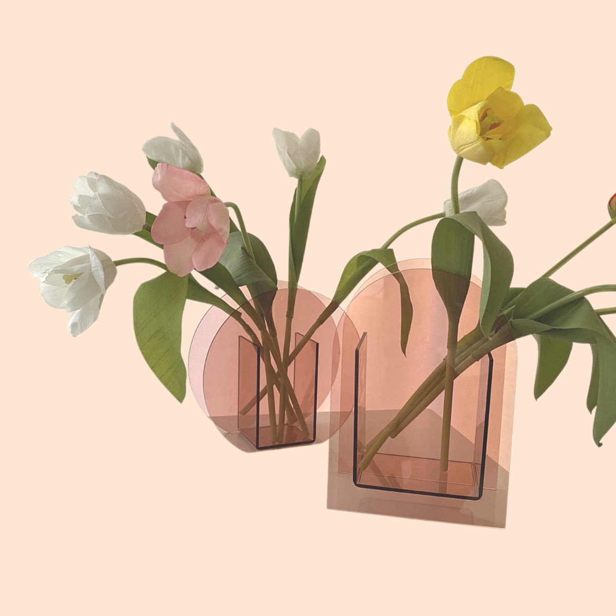 Simple acrylic art geometric vase features modern design, durable acrylic material, easy to clean, and suits various decor styles. Ideal for home or office.